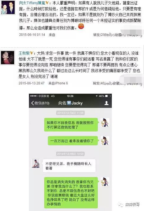 这个王秋紫还不是个简单的角色,有过一段婚姻,生了一个孩子,之后钓上向佐,但不被向太同意,便在微博上和向太互撕。