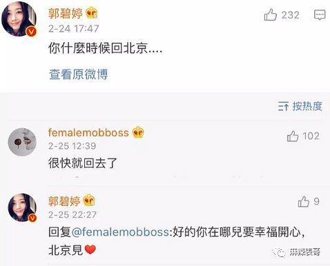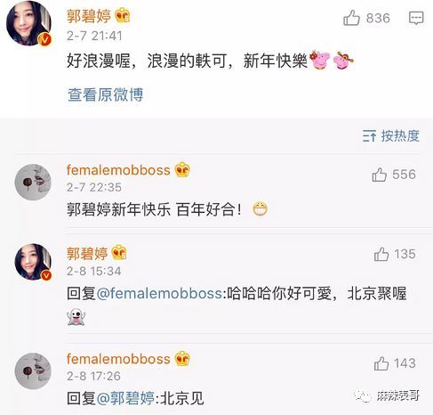 这一互动,又让不少网友产生了脑洞,觉得郭碧婷热情的很反常,像做错了事的感觉。而且这些内容明明可以私下聊,却要在微博上聊,有点奇怪。