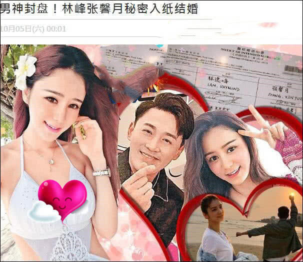 上个月有港媒报道称林峯已经与张馨月秘密拟定了结婚通知书,二人的恋情终于修成了正果。在此之前林峯与张馨月就被爆料已经一同搬入豪宅开始同居,女方正在积极健身准备生孩子,有不少人爆料二人的婚礼即将在林峯40岁生日时完成。