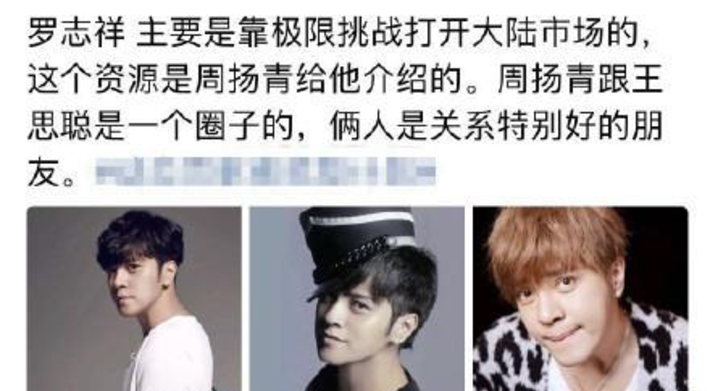 互动中,王思聪还称呼周扬青为青姐,虽然从这一点我们无法看出罗志祥参加极限挑战是不是周扬清介绍的的,然而我们可以看出周扬青与王思聪两个人的关系非同一般。从他们互动的内容,我们还可以看出周扬青应该很早就经常跟上流社会的人打交道了,否则也不会认识王思聪和罗志祥这样的人。这样看来,罗志祥参加《极限挑战》这档综艺节目是周扬青介绍的也是非常正常。