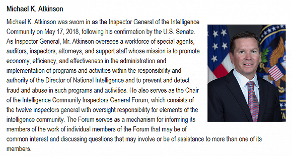 9月9日,阿特金森干脆自己写了一封信给众院情报委员会,告知其投诉的存在。而事实上这就等于,阿特金森向美国国会投诉了他的上司马奎尔掩盖事实的行为。