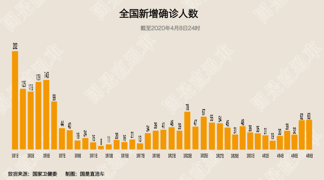 据国家卫健委通报,4月8日0—24时,31个省(自治区、直辖市)和新疆生产建设兵团报告新增确诊病例63例,其中61例为境外输入病例,2例为本土病例(广东2例)。