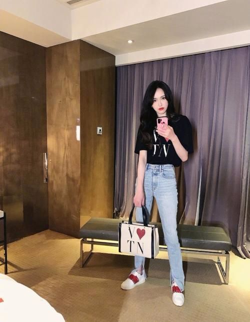在还没生宝宝前的唐嫣,无论是气质还是颜值都没有低过,虽然生完宝宝后也还是没有低过,下图照片中,唐嫣穿了一件黑色T恤搭配一条浅色牛仔紧身长裤,看起来性感无误。