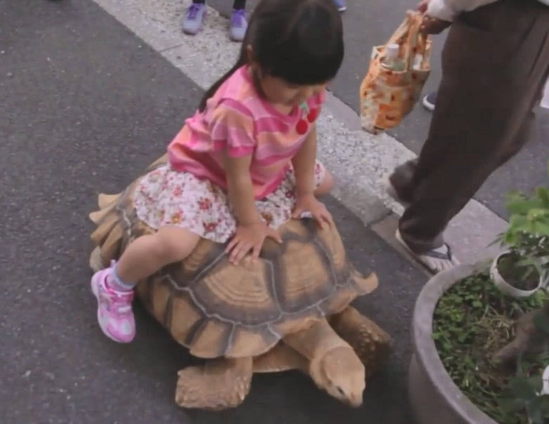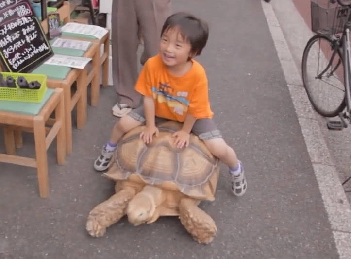 都说乌龟走路慢,可是看人家驮着小朋友走路真是四平八稳呢。