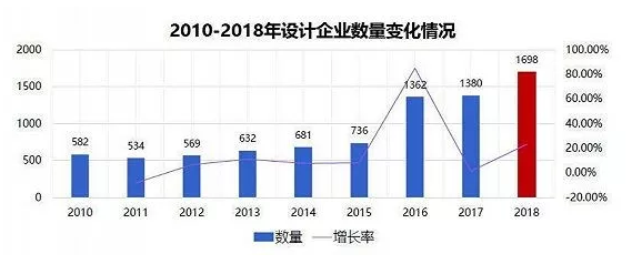 所以,3000亿美元的替代空间,注定有大量优秀的国产芯片公司。各位要注意到一点,2015年至今,我国芯片设计企业暴增了2倍,2018年达到1698家。