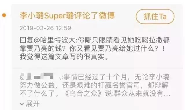 这一次是因为李小璐的小号被扒,而李小璐疑似切错账号给网友评论,内容diss了贾乃亮没有给过她什么。