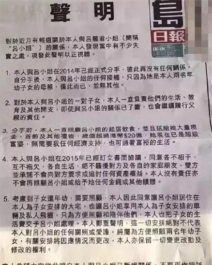 两个女人最后一次争斗是吕丽君当时给媒体发了一封公开信,信中自认是正宫身份,还说甘比女儿父亲的身份不详,这直接惹毛了刘銮雄。到了2016年,刘銮雄直接登报发声明和吕丽君断绝了关系。